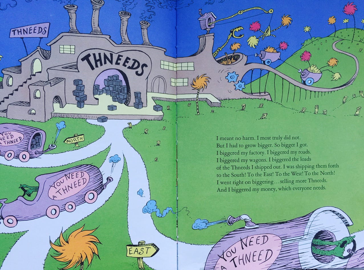 I went right on biggering … selling more thneeds.